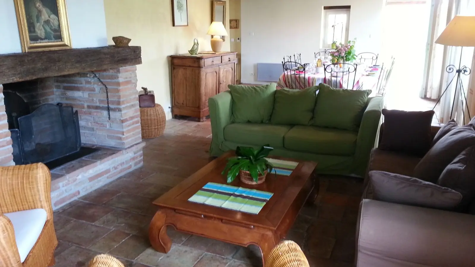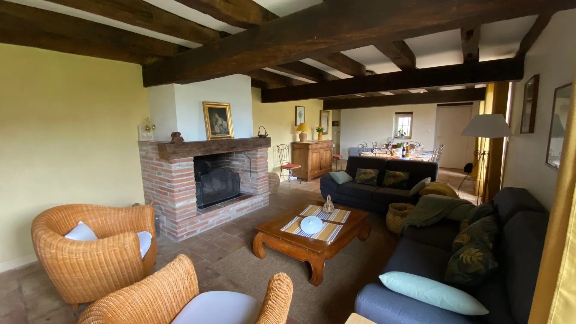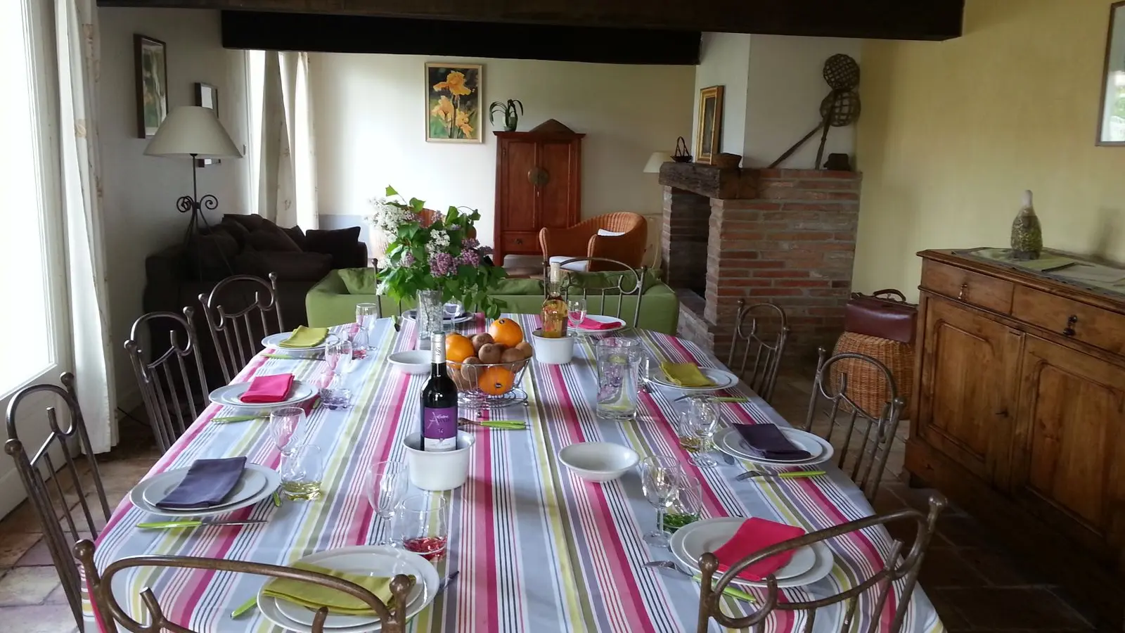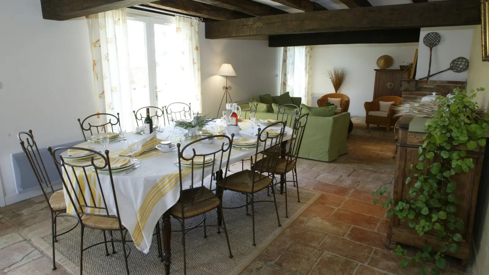 Self-contained gîte. Ground floor: living room (sofas, TV), kitchen (fitted units, MO, LV), pantry (SL LL freezer and fridge), storeroom and separate toilet with washbasin. 1st floor: 2 bedrooms (1 x 140cm bed, 1 with en-suite shower room), 1 bedroom (2 x 90cm beds), 1 bedroom (1 x 160cm bed), bathroom, WC. Lounge/library (bench seat, sofa). 2 terraces on ground floor and 1 upstairs. Porch. Garden furniture and barbecue. Carport. Electric heating. Cot, high chair, changing table and deckchair available on request. Optional cleaning service. Wifi in the accommodation, wood provided for the fireplace free of charge.