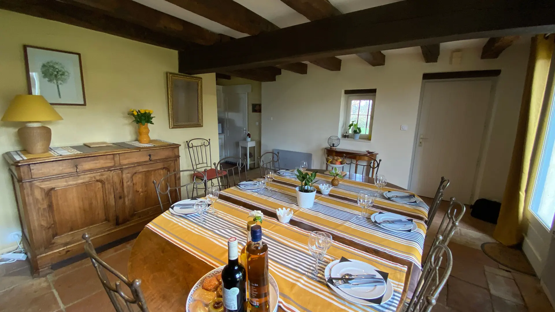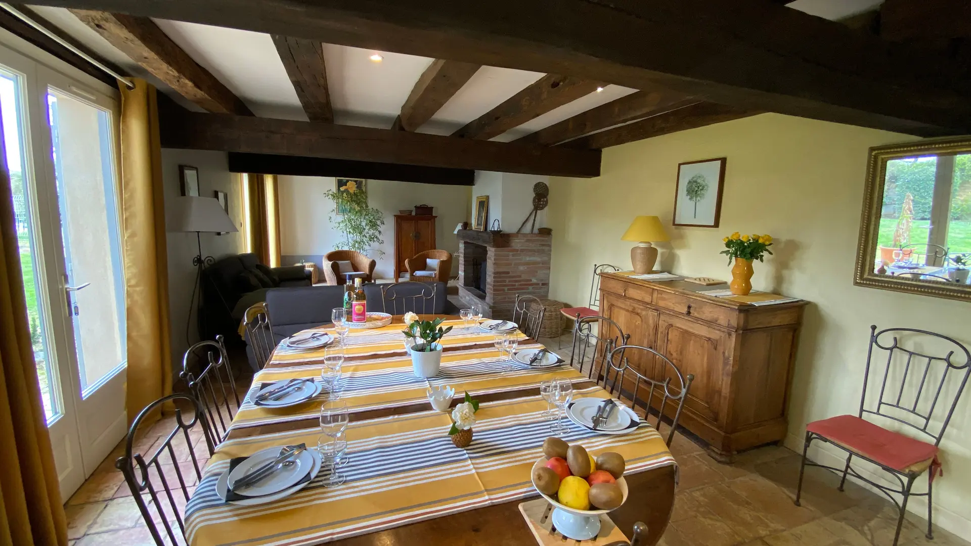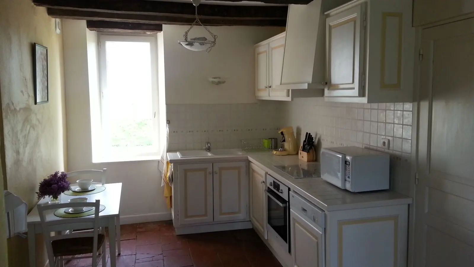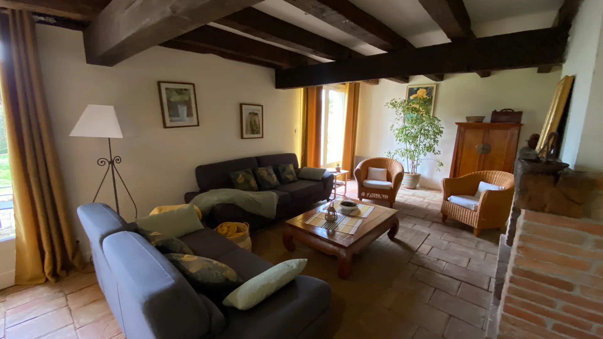 Self-contained gîte. Ground floor: living room (sofas, TV), kitchen (fitted units, MO, LV), pantry (SL LL freezer and fridge), storeroom and separate toilet with washbasin. 1st floor: 2 bedrooms (1 x 140cm bed, 1 with en-suite shower room), 1 bedroom (2 x 90cm beds), 1 bedroom (1 x 160cm bed), bathroom, WC. Lounge/library (bench seat, sofa). 2 terraces on ground floor and 1 upstairs. Porch. Garden furniture and barbecue. Carport. Electric heating. Cot, high chair, changing table and deckchair available on request. Optional cleaning service. Wifi in the accommodation, wood provided for the fireplace free of charge.