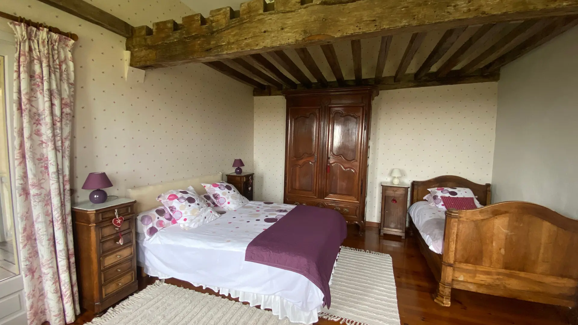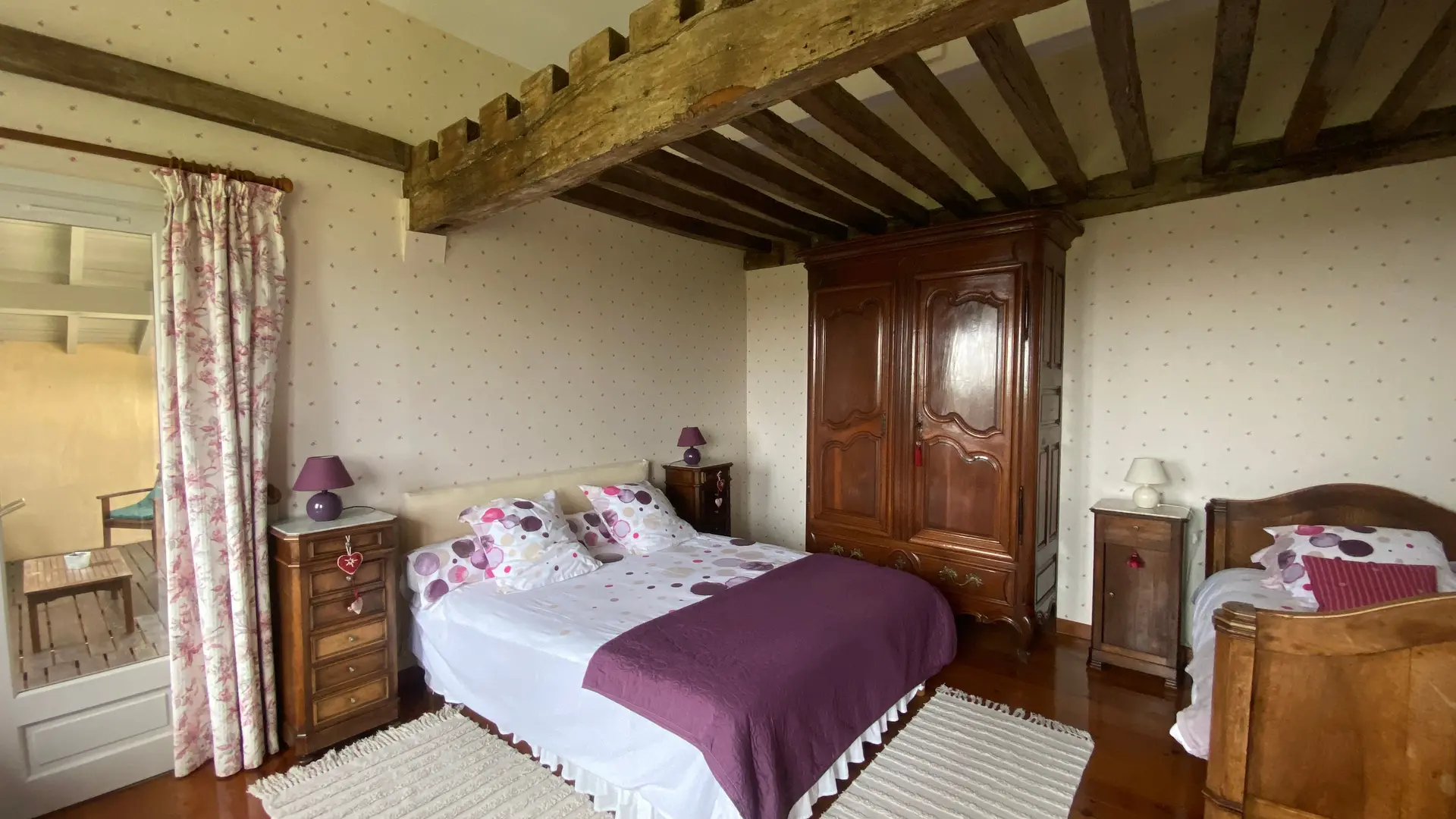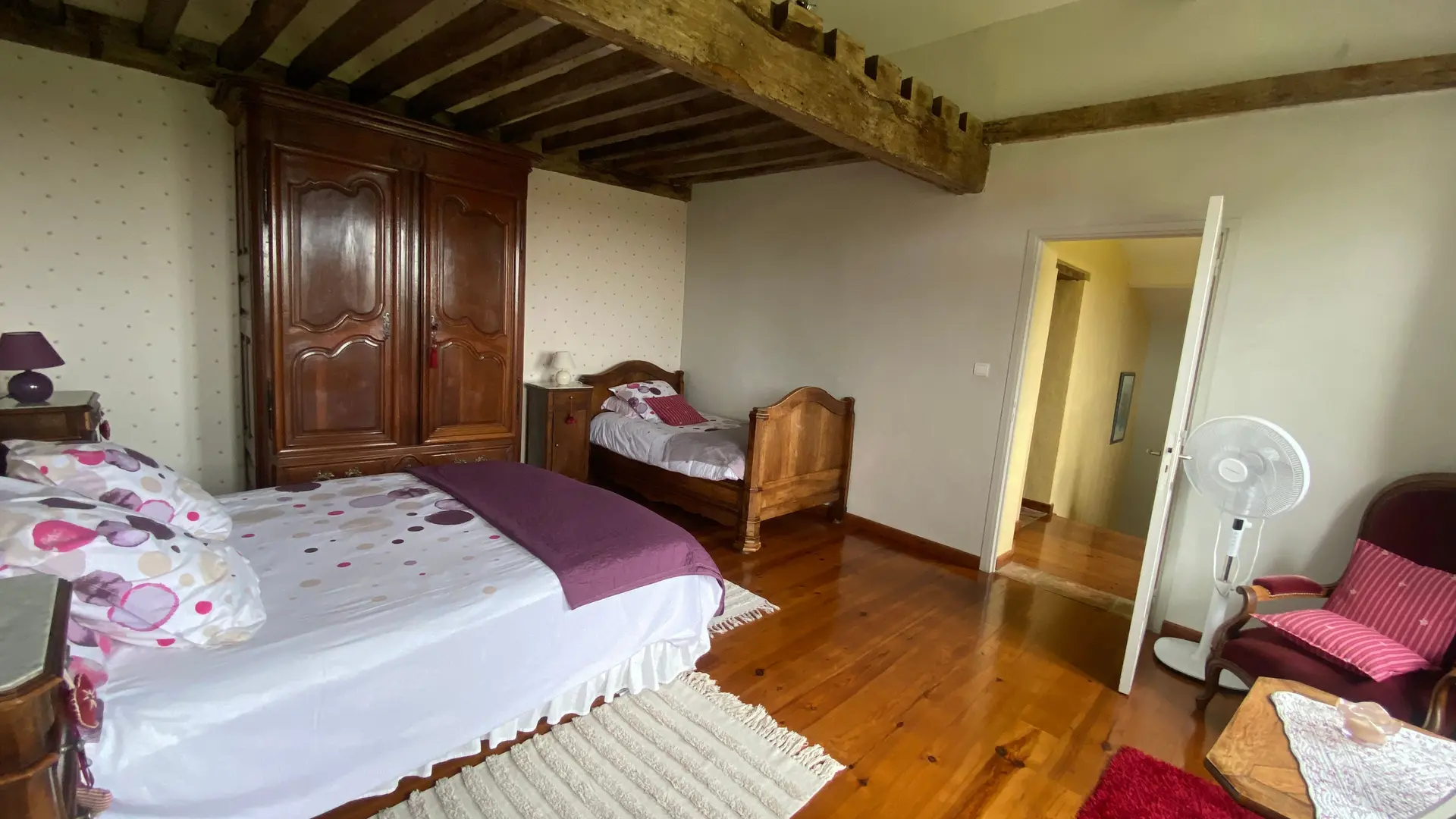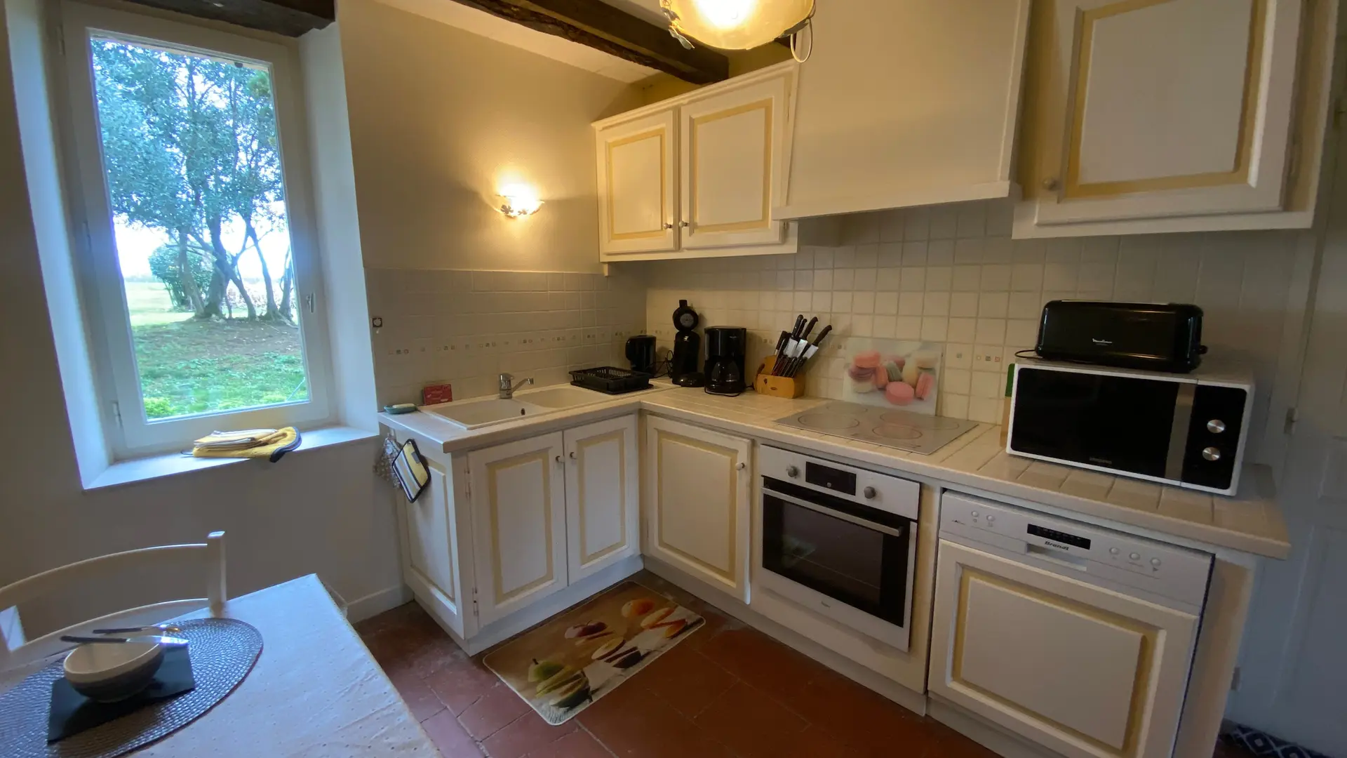 Self-contained gîte. Ground floor: living room (sofas, TV), kitchen (fitted units, MO, LV), pantry (SL LL freezer and fridge), storeroom and separate toilet with washbasin. 1st floor: 2 bedrooms (1 x 140cm bed, 1 with en-suite shower room), 1 bedroom (2 x 90cm beds), 1 bedroom (1 x 160cm bed), bathroom, WC. Lounge/library (bench seat, sofa). 2 terraces on ground floor and 1 upstairs. Porch. Garden furniture and barbecue. Carport. Electric heating. Cot, high chair, changing table and deckchair available on request. Optional cleaning service. Wifi in the accommodation, wood provided for the fireplace free of charge.