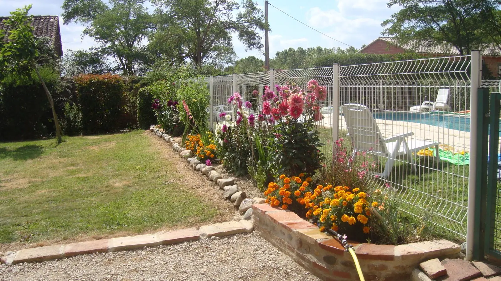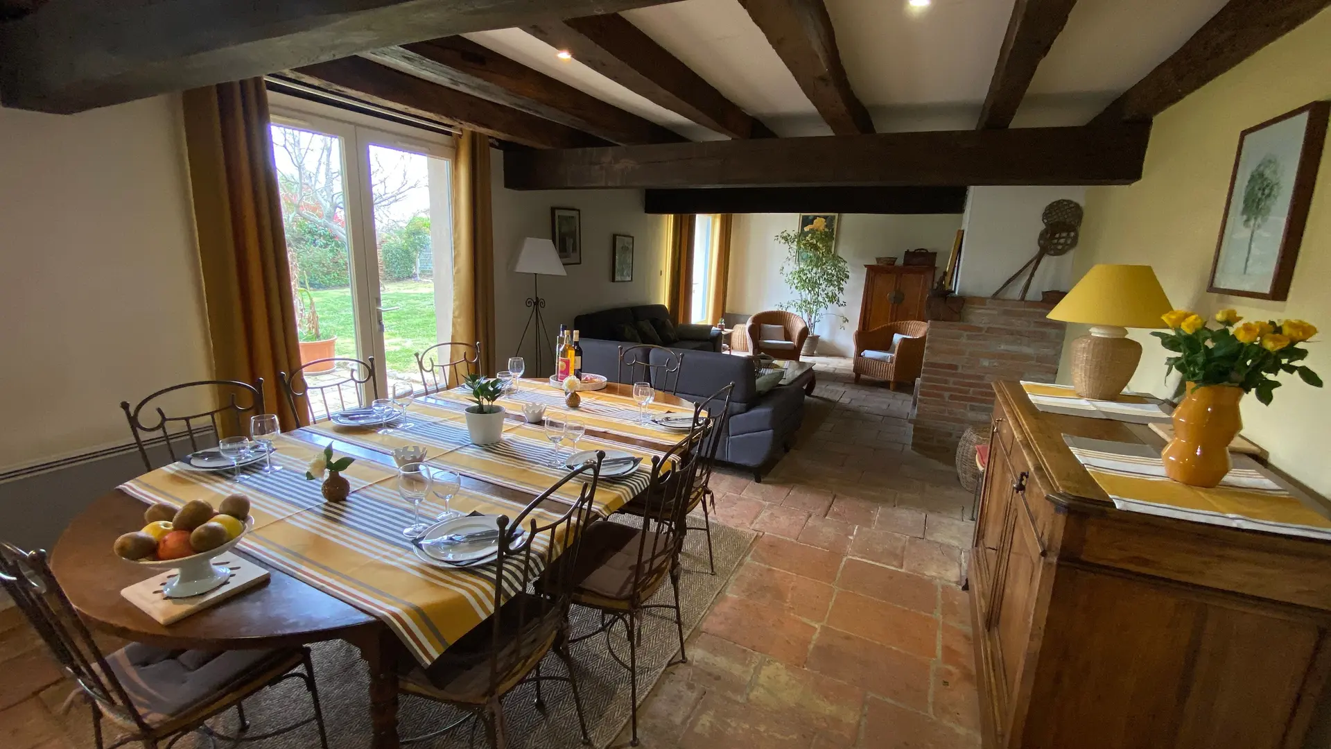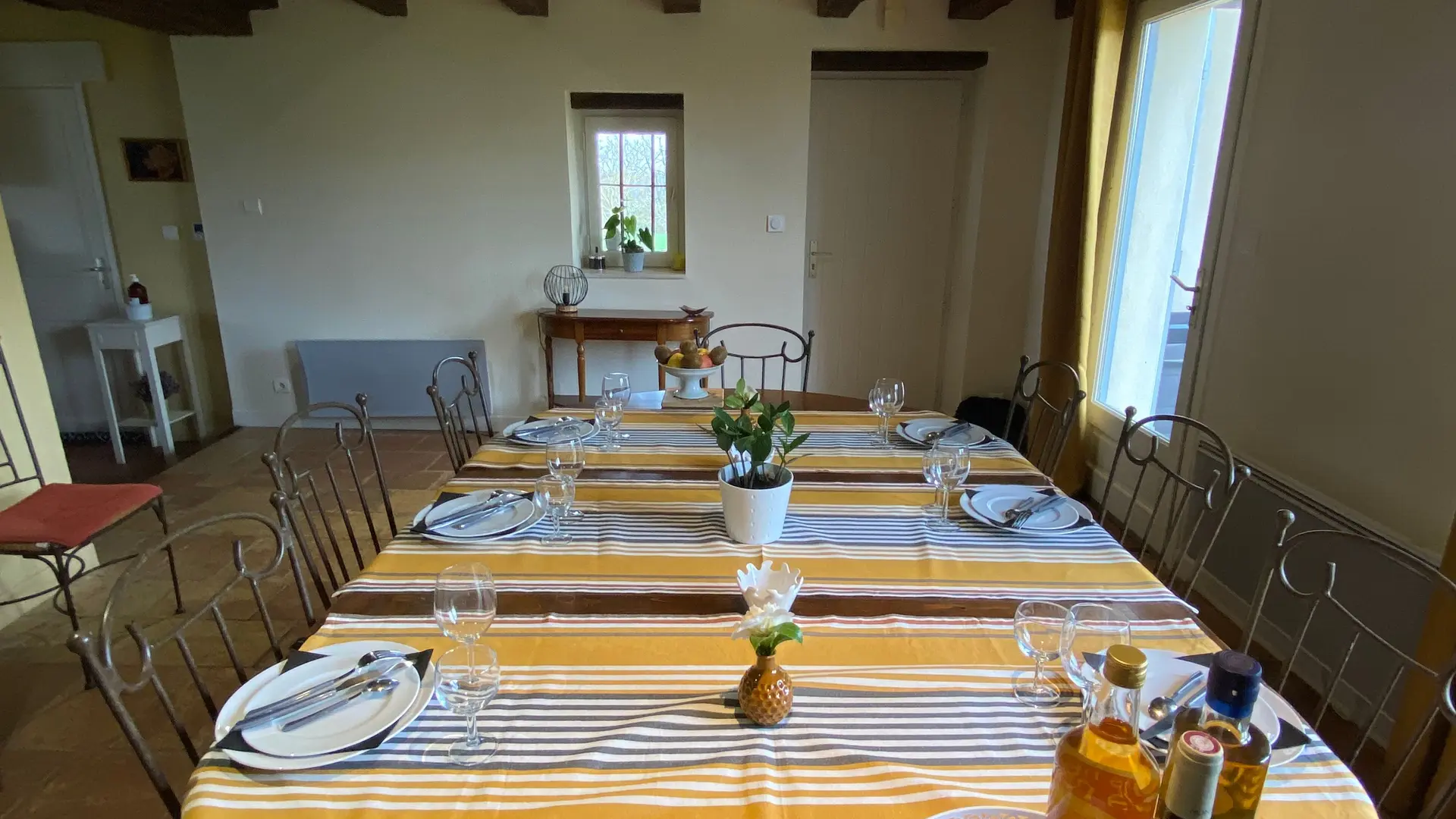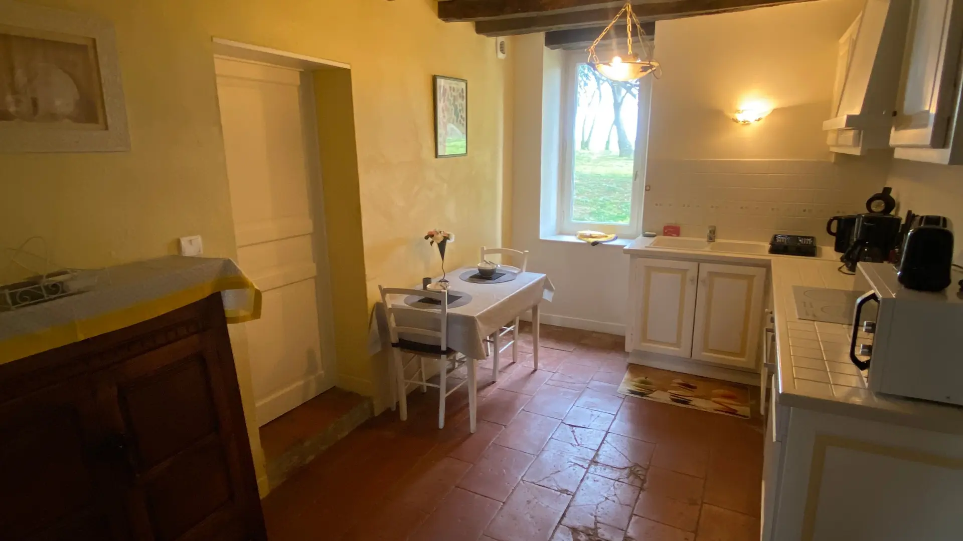 Self-contained gîte. Ground floor: living room (sofas, TV), kitchen (fitted units, MO, LV), pantry (SL LL freezer and fridge), storeroom and separate toilet with washbasin. 1st floor: 2 bedrooms (1 x 140cm bed, 1 with en-suite shower room), 1 bedroom (2 x 90cm beds), 1 bedroom (1 x 160cm bed), bathroom, WC. Lounge/library (bench seat, sofa). 2 terraces on ground floor and 1 upstairs. Porch. Garden furniture and barbecue. Carport. Electric heating. Cot, high chair, changing table and deckchair available on request. Optional cleaning service. Wifi in the accommodation, wood provided for the fireplace free of charge.