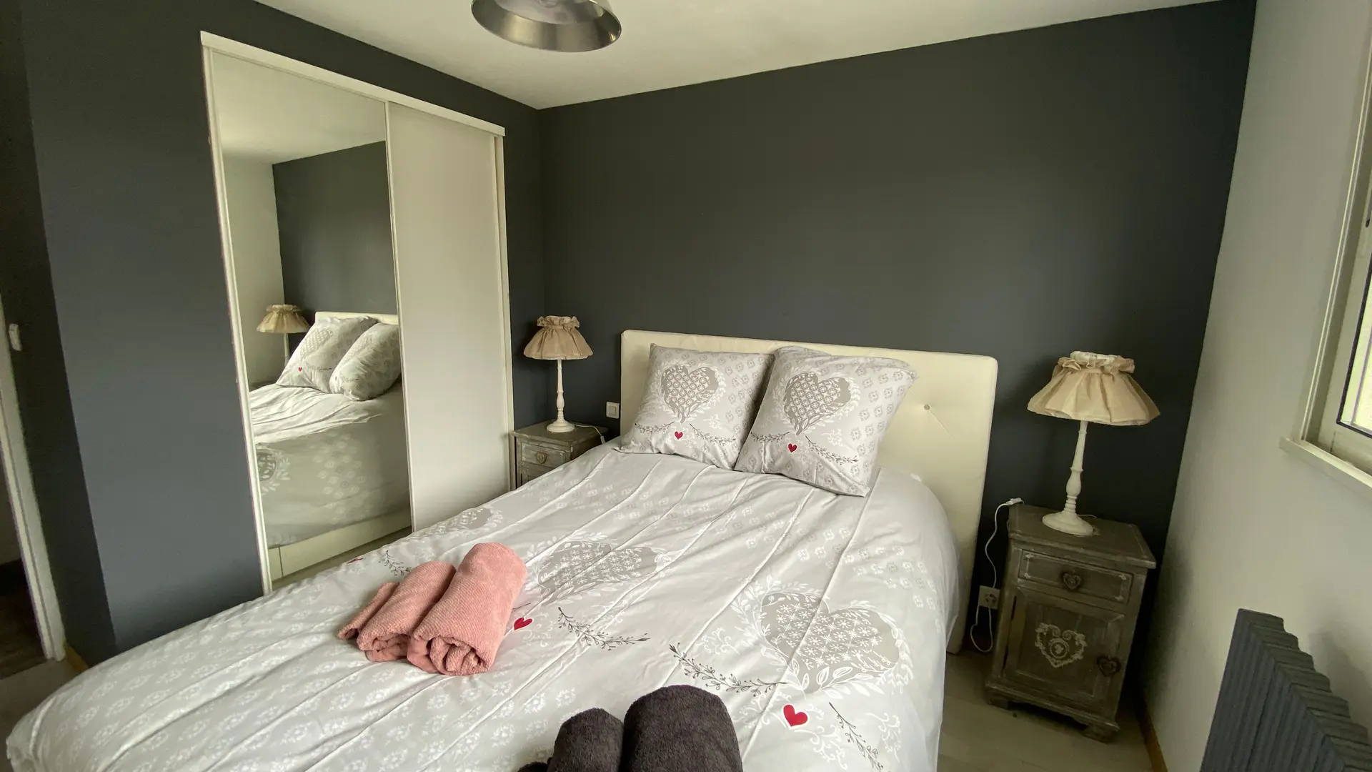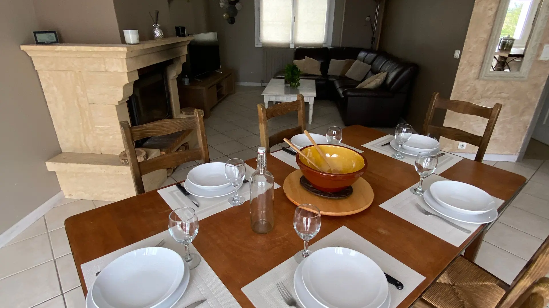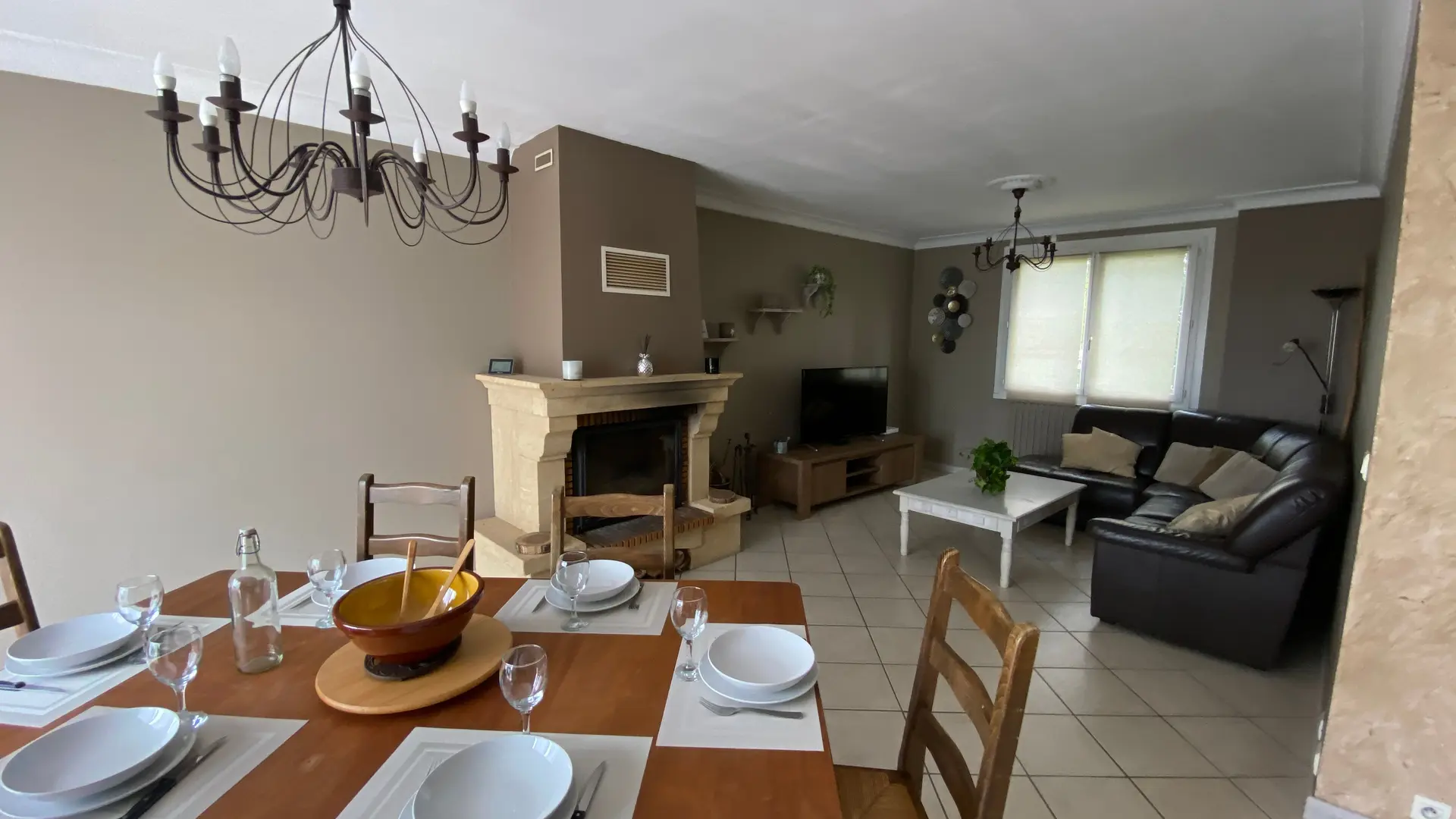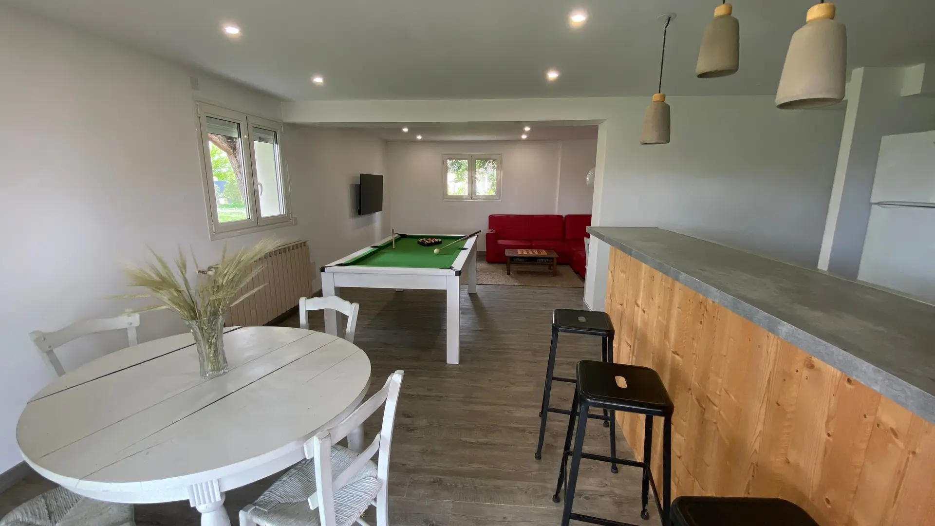 The accommodation comprises two interconnected areas, on the ground and ground floors, with all modern comforts. On the ground floor, there is a living room with a fitted kitchen (fridge-freezer, hob, oven, washing machine), table and chairs, corner sofa and TV. A bedroom (2 x 0.90cm beds), a bedroom (1 x 140cm bed) and a huge shower room with wc. Via an internal staircase and another external staircase, the 1st floor offers a large living room with fireplace (TV insert), corner sofa, dining area (table and chairs), and integrated kitchen area (cooking facilities, dishwasher, oven, microwave, fridge). Two bedrooms (2 single beds), one bedroom (1 double bed), shower room and separate wc. Balcony on first floor. Covered pergola with garden table and stools, string lights. Wifi throughout. Bed linen, towels and household linen provided and included in the price. Wood for the fireplace provided. Charcoal barbecue. Fenced garden with trees and gate. Bicycles can be stored at the rear.