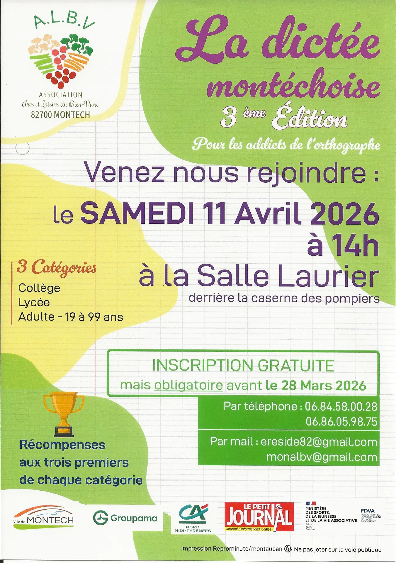 3ème dictée montéchoise ouverte à tous de 9 à 99 ans !