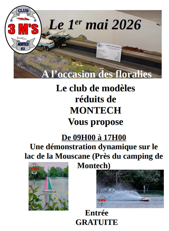 A l'occasion des floralies, le club de modèles réduits de Montech propose son habituelle démonstration dynamique au bord du Lac de la Mouscane.