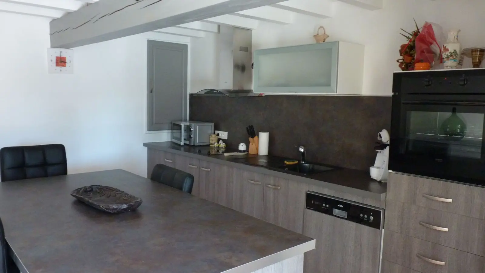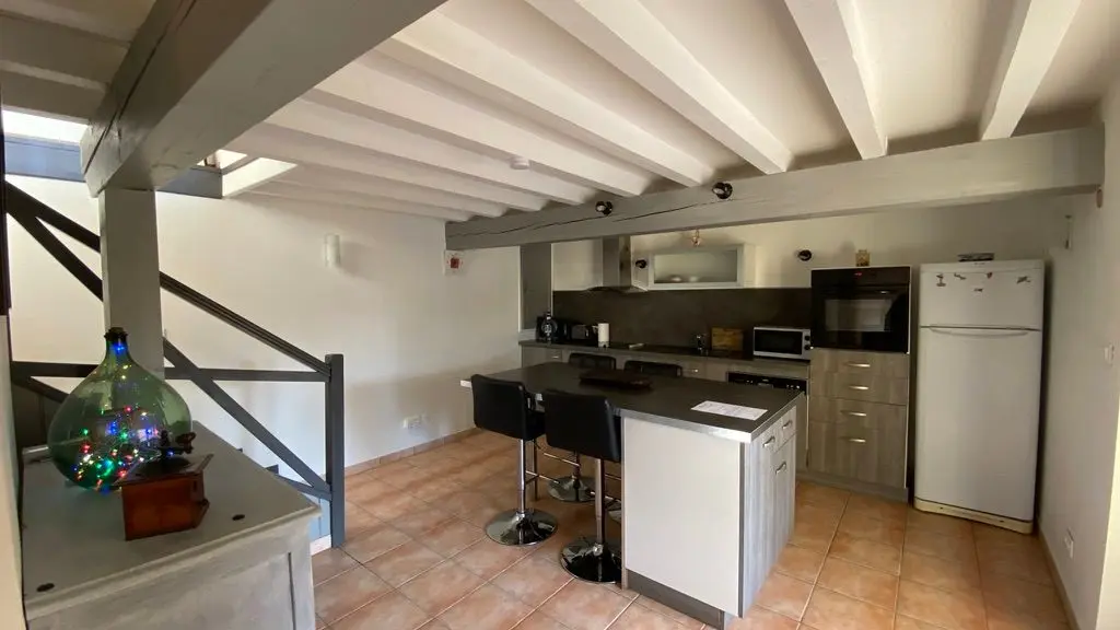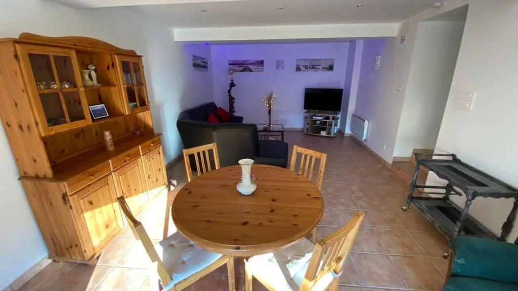 Au rez-de-jardin, une cuisine entièrement équipée (LV, MO), une salle à manger avec coin salon (TV, canapé d'angle), wifi internet,1 wc. Au niveau 0 côté rue ou 1 à partir de la cuisine : 2 chambres, 1 chambre avec 2 lits 120, 1 chambre avec 1 lit 140 et dressing. Une salle d'eau (douche à l'italienne, LL), 1 wc indépendant, placard de rangement. Hall d'entrée. Un balcon terrasse et une terrasse côté de jardin, salon de jardin, parasol, barbecue. Jardin arboré. Portail et portillon électriques. Draps et linge de toilette fournies, chauffage inclus. wifi dans tout le logement. Gîte Climatisé.