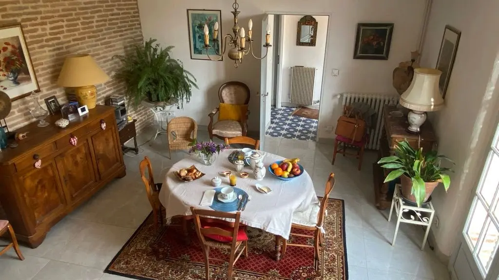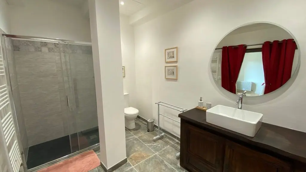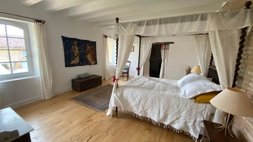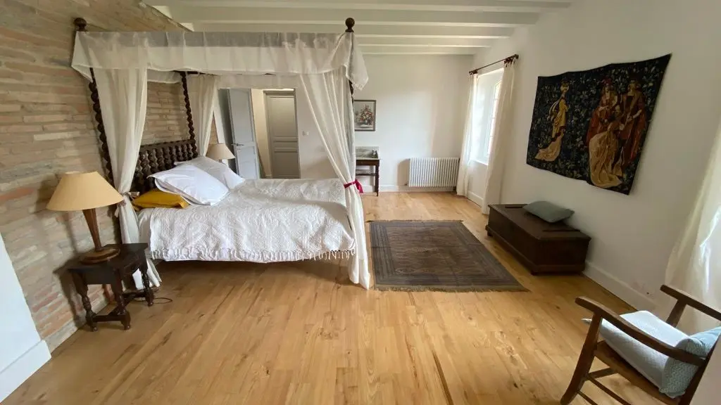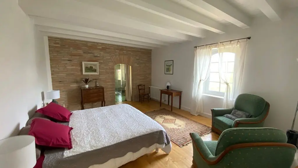 Les deux chambres se trouvent au 1er étage : La chambre baldaquin avec 1 lit baldaquin en 140, un coin salon avec plateau de courtoisie, une salle d'eau avec douche à l'italienne et wc. La chambre printemps avec 1 lit 180, un bureau, un petit coin salon avec plateau de courtoisie, une grande salle de bains avec baignoire, douche à l'italienne, et wc. Dans les deux chambres, possibilité de rajouter un lit d'appoint 1 personne. Wifi dans la maison et dans les chambres. Cour gravillonnée et parc avec point de vue sur les Pyrénées. Le matin, vous pourrez savourer un copieux petit-déjeuner avec des produits maison. Le soir, sur réservation, vous pourrez partager un moment de convivialité en table d'hôtes dans la grande salle à manger. Louis vous régalera avec les bons produits de notre région et les vins du terroir devant la grande cheminée.