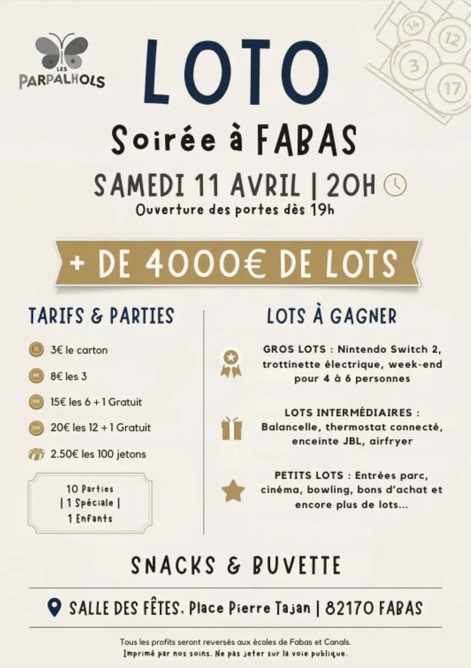 Loto à 20h, ouverture des portes dès 19h